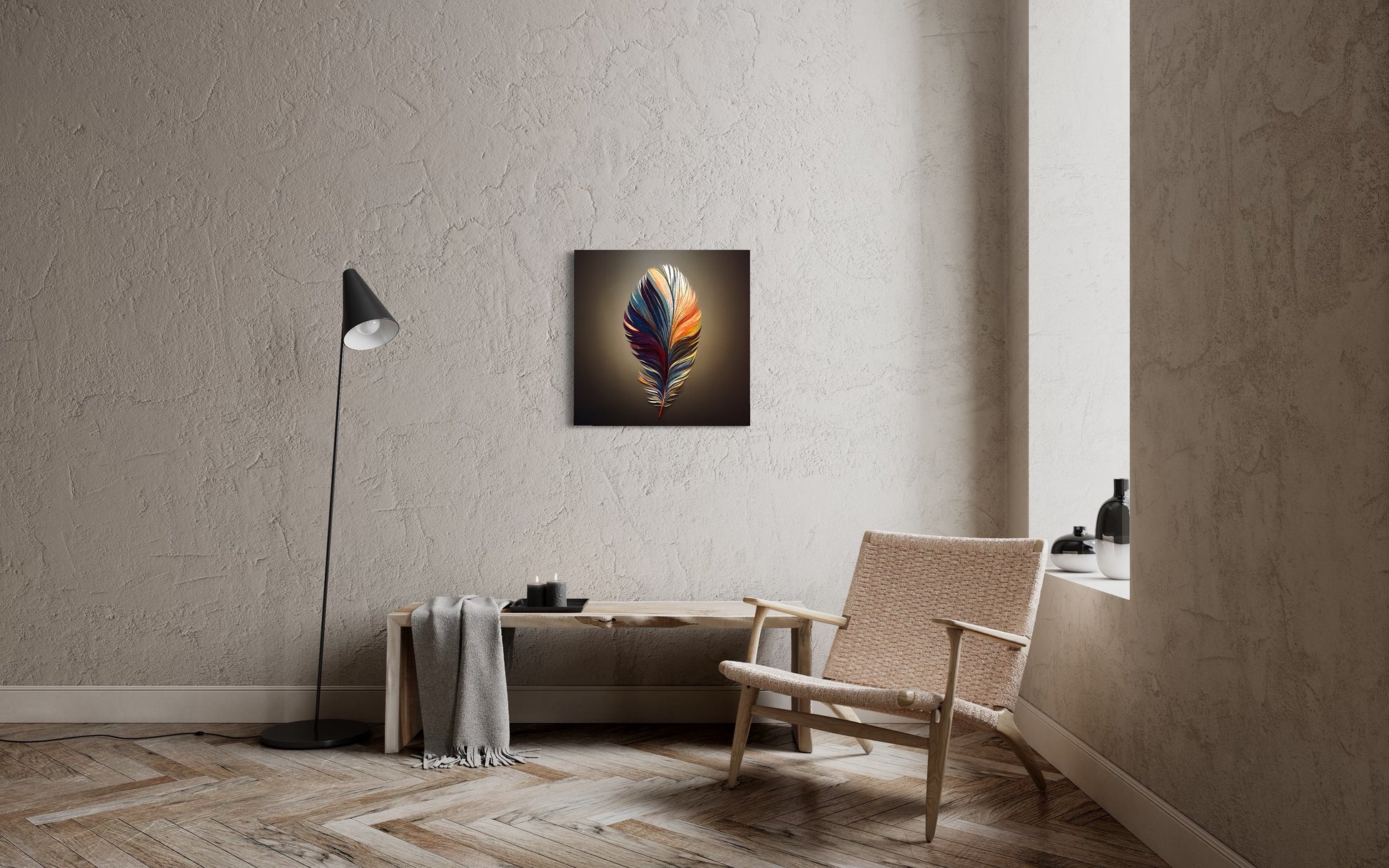 Acrylic paint of a colorful feather with a dark background, light gray and maroon, organic, fluid lines, sharp & vivid colors, bold lithographic